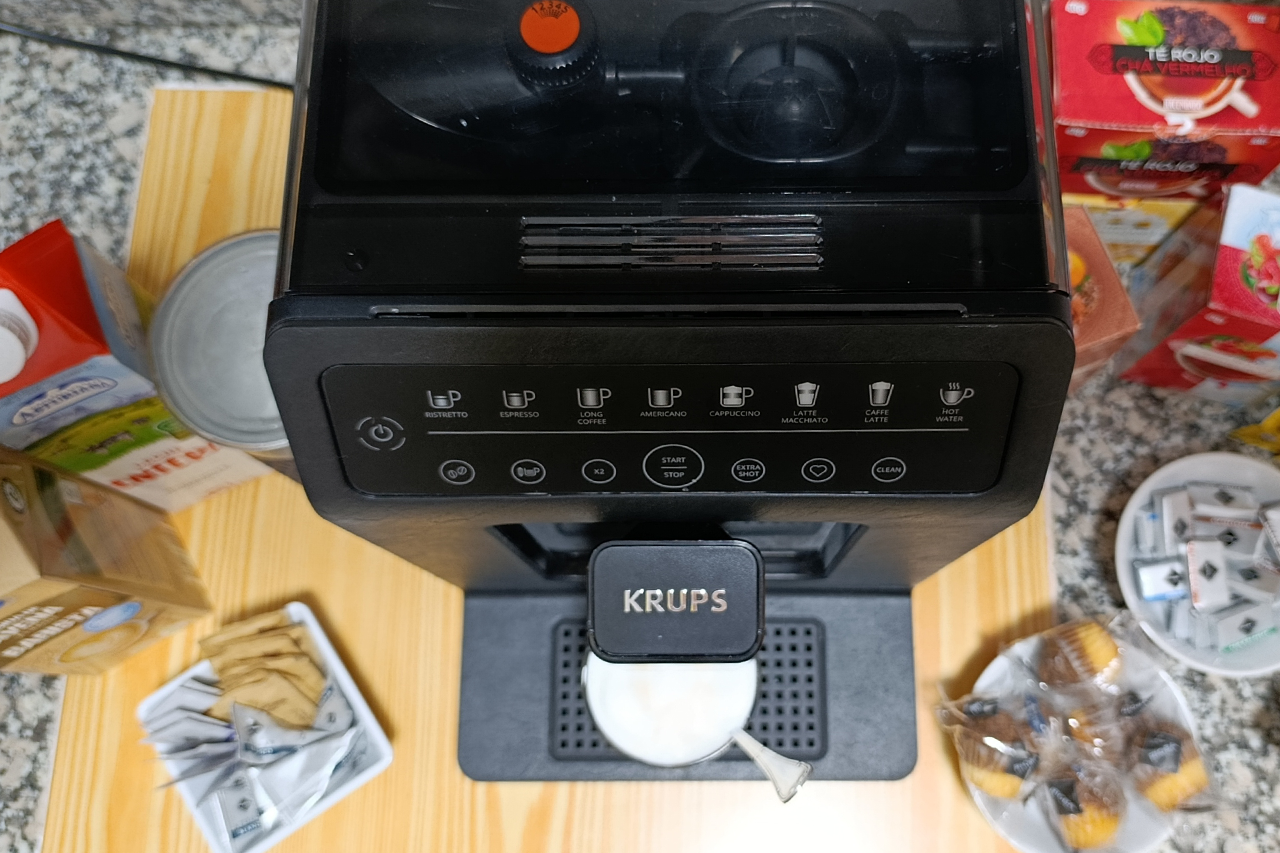 Ein moderner Kaffeevollautomat inklusive Milchbehälter und Milchaufschäumer für Kaffeespezialitäten ganz nach deinem Geschmack - Edle Bohnen & Kakao: